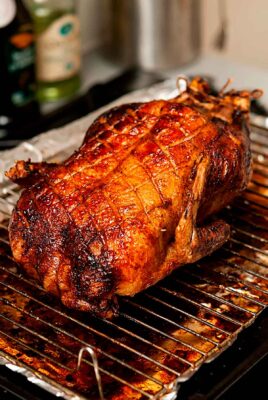 3. Lägg den med bröstet neråt och efter 45 minuter vänder du den uppåt. Det tar mellan 90 minuter och 2 timmar beroende på storlek. Den är klar när den har en innertemperatur på 68 grader.